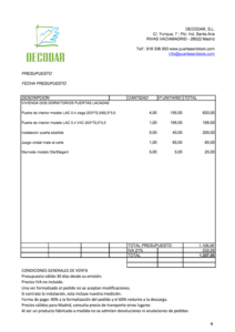Para una vivienda de 2 dormitorios y con un total de 5 puertas, el presupuesto con la instalación, cristales para las puertas y manivela incluida en puertas lacadas tiene un coste final de 1.105€ + IVA.